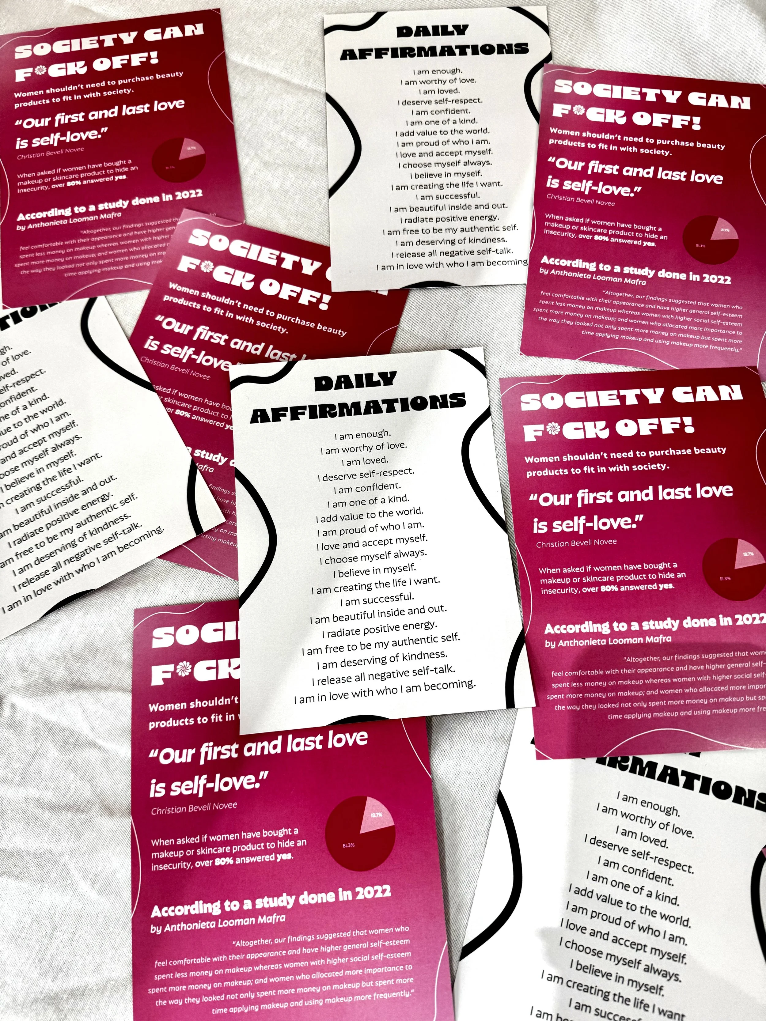 I created this poster to mimic an ad that would be visible in beauty stores. I wanted a simple, short, and powerful statement so that viewers could read and understand the point I was trying to make. I stuck with the different shades and values of pink to go along with the stereotypical judgment that all women love pink, and wanted to keep the shapes geometrical to add my personal touch.